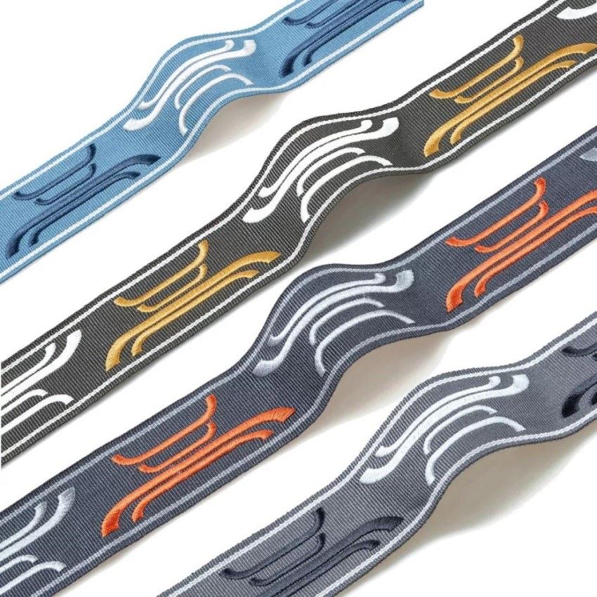 這款帶子,以貼布繡工藝,讓梅花呈現(xiàn)錯落的立體感;