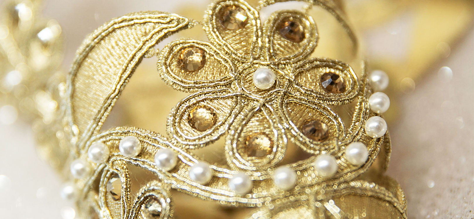 楓丹白露由朱自清先生翻譯, Fontainebleau法語(yǔ)中的原意是美麗的泉水。 也正如法國(guó)楓丹白露宮,所彰顯的精致奢華。 整套系列采用水溶刺繡工藝,為有別于傳統(tǒng),設(shè)計(jì)師結(jié)合高亮珍珠、亮片與奧鉆元素完美詮釋法式浪漫的優(yōu)雅與華麗。