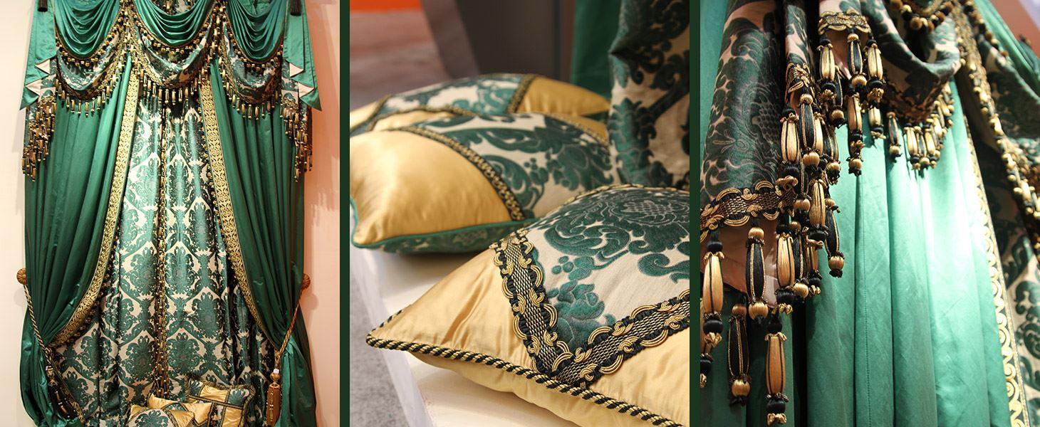 該系列以歐式古典宮殿為主題,用人絲、金線來(lái)彰顯歐式古典宮殿的渾厚與華貴。